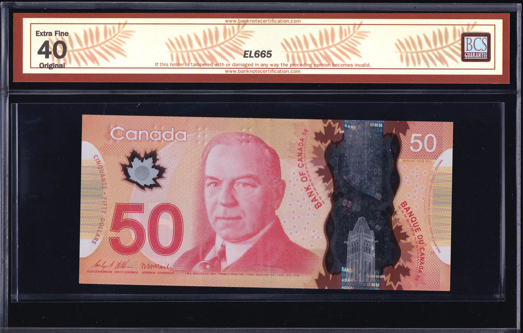 2012 Bank of Canada $50 Radar & Repeater "3633363" BCS EF40 Original (BC-72c - N1 - N10)